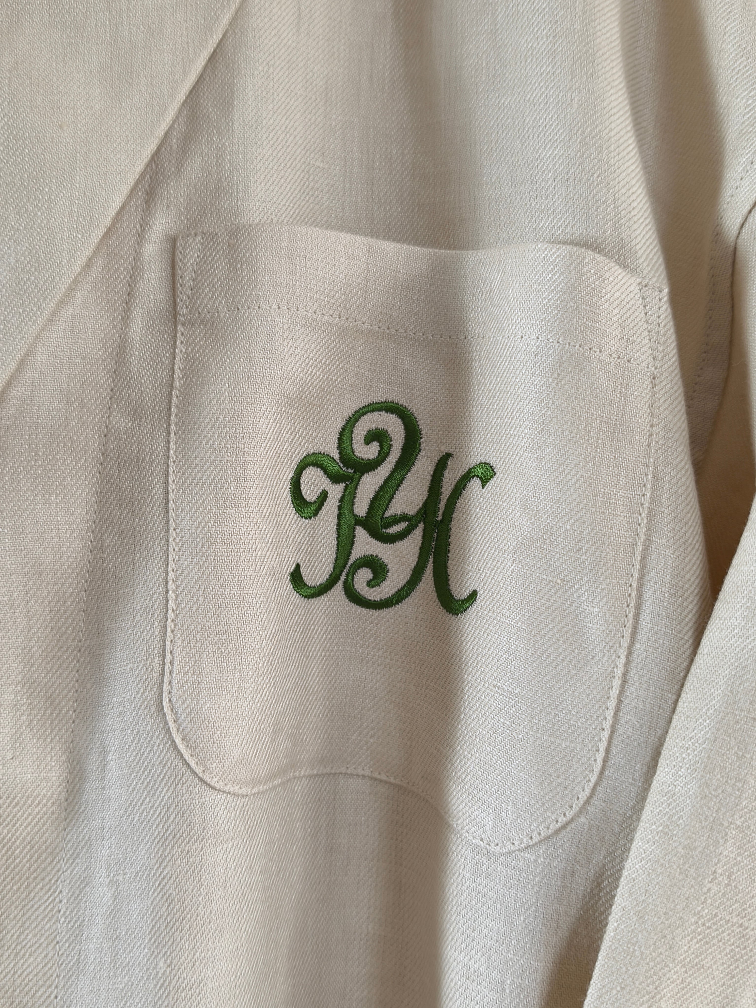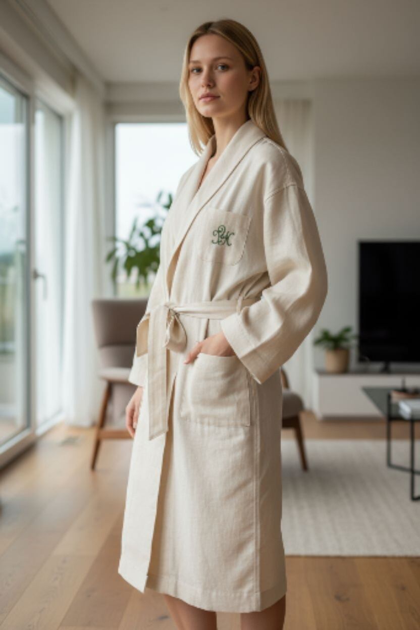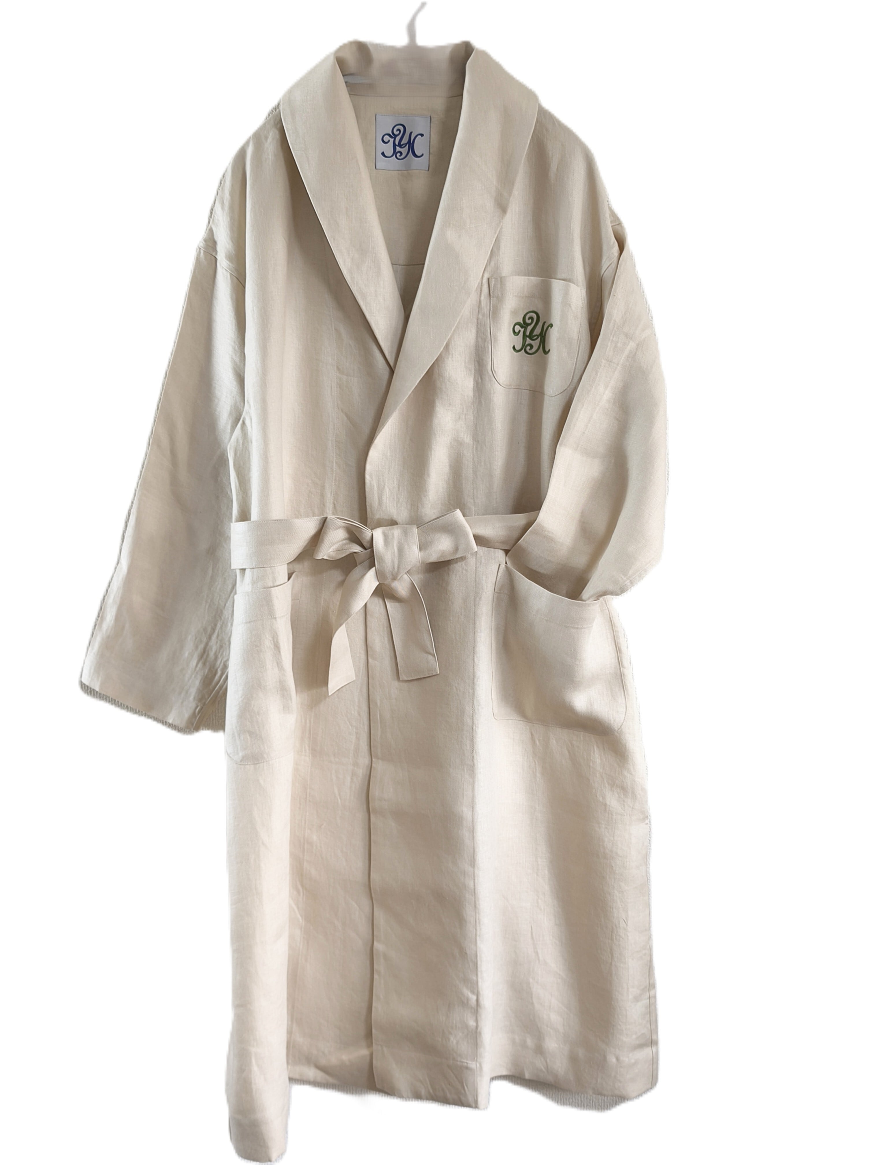 サフィランリネン100%の生地で作ったアイボリーのガウンです。